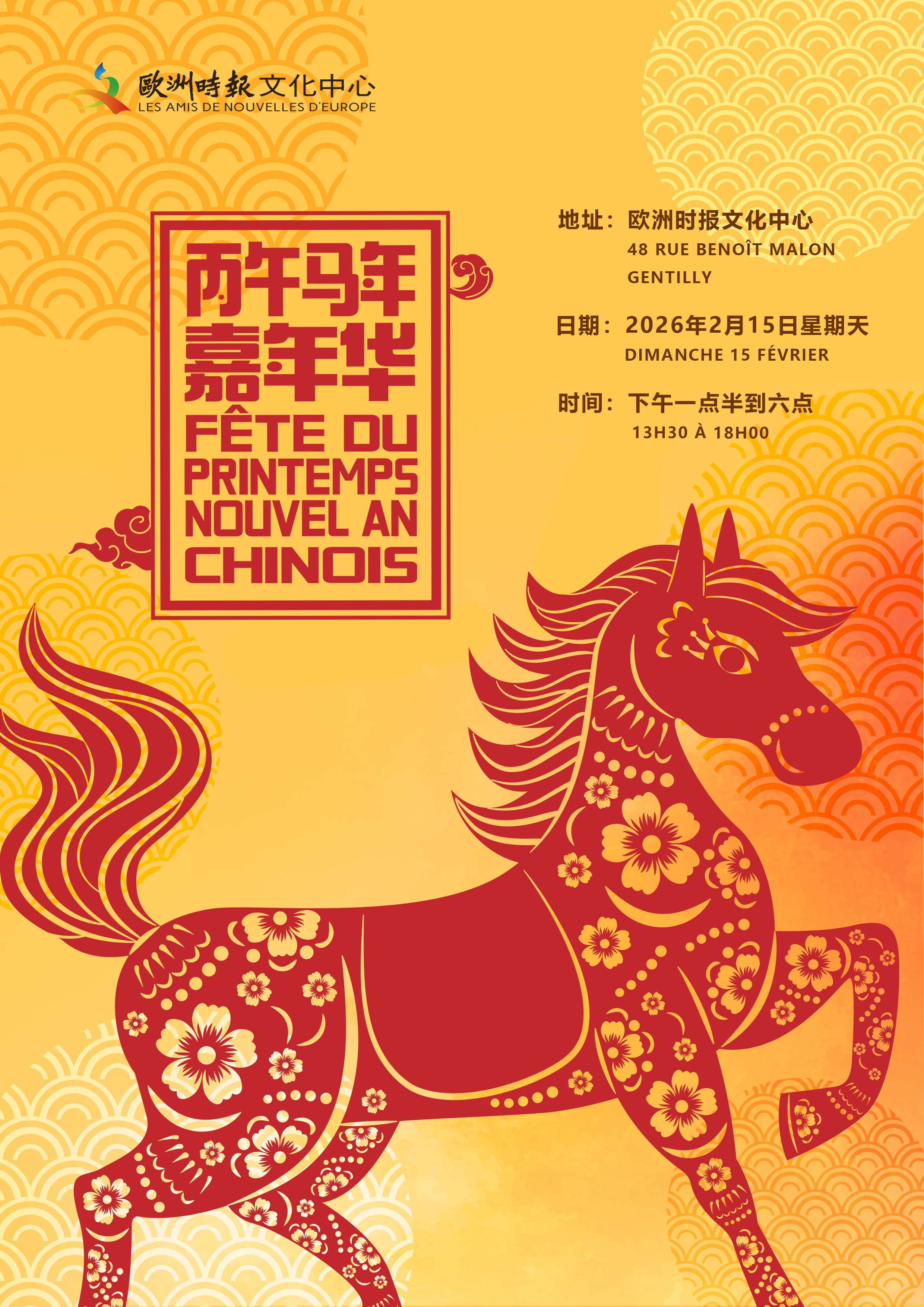 2026年2月15日,一起来欧洲时报文化中心过个原汁原味的中国年吧!