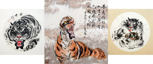 邢春来先生饱含艺术激情,拥有深厚书画功底,在中国传统水墨技法上加入了独特的写意手法。其笔下的老虎,可上山称王,可下水嬉戏;可寥寥数笔显情趣,可处处逼真露威严,充满了中国文化特有的人文意蕴和写意精神。