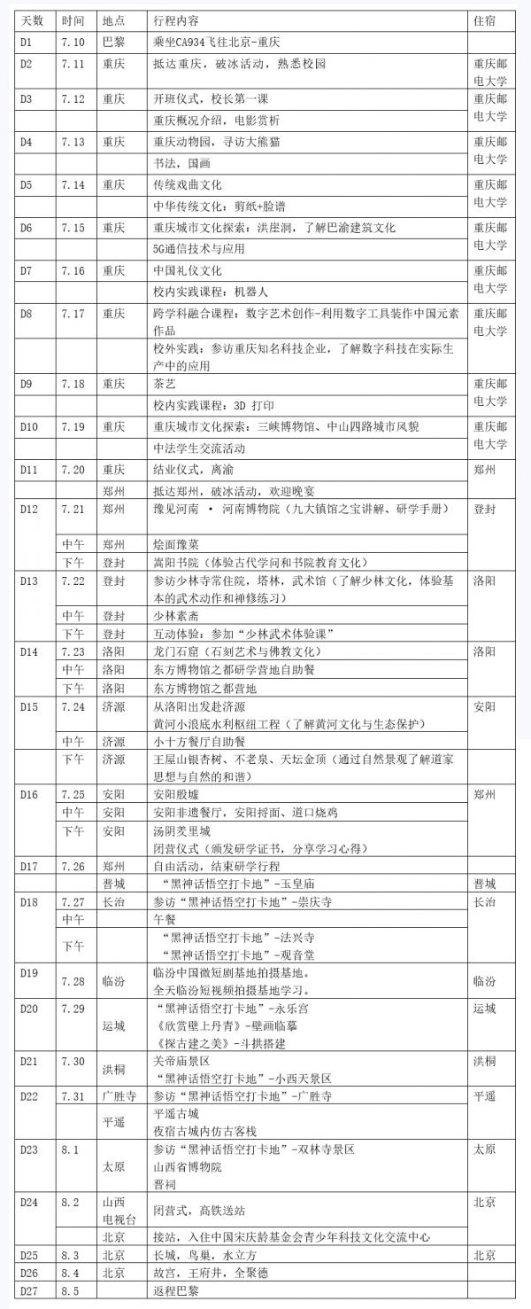 * 含巴黎北京往返机票/国内交通/课程/食宿/保险