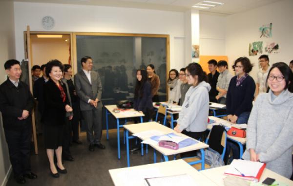 裘援平参观了欧洲时报中文学校、中心电脑教室、钢琴室、舞蹈室、展览厅等,以及学生们参加国侨办“中华文化大乐园”学习成果汇报展览,听取了陈晓燕对文化中心建设和活动开展的介绍。在中文班,同学们齐声向裘援平拜年。裘援平告诉同学们:“华人后代学习中文、拥有多语技能,不仅是生存就业优势,更可以加强他们对祖籍国的感情,从而搭建祖籍国与所在国的沟通桥梁。”