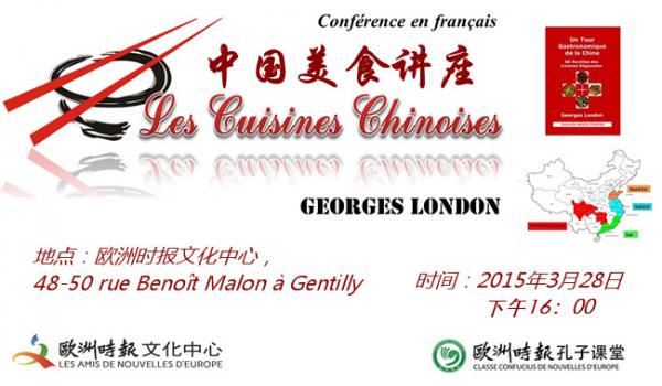 讲座的主讲人Georges Londonå…ˆç”Ÿæ½œå¿ƒç ”ç©¶ä¸å›½ç¾Žé£Ÿè¿‘三å年,他ä¸ä»…对ä¸å›½å„地美食如数家çï¼Œè¿˜èƒ½æ ¹æ®ä¸å›½å„çœä»½ä¸åŒçš„地ç†çŽ¯å¢ƒåŠè¿¥å¼‚的气候特点æ¥åˆ†æžè¿™äº›å› ç´ å¯¹å½“åœ°å±…æ°‘é¥®é£Ÿä¹ æƒ¯æ‰€äº§ç”Ÿçš„å½±å“。多年æ¥ï¼ŒGeorges London先生ä¸ä»…游走å„åœ°å®£ä¼ ä¸å›½ç¾Žé£Ÿï¼Œä»–è¿˜æ ¹æ®æ‰€äº†è§£çš„ä¸å›½ç¾Žé£ŸçŸ¥è¯†å‡ºç‰ˆäº†ã€Šä¸å›½ç¾Žé£Ÿä¹‹æ—…》(《Un Tour Gastronomique de la Chine》),本书在“世界上最好的ä¸å›½æ–™ç†å›¾ä¹¦â€ä¸æŽ’å第二,并由æ¤èŽ·å¾—2011年美食世界烹饪书ç±å¥–。