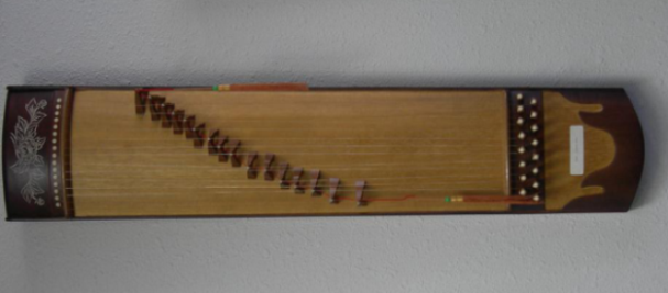 “古琴,原称琴,又称瑤琴、玉琴、五弦琴和七弦琴,是中国的拨弦乐器,有三千年以上历史,属于八音中的丝。古琴音域宽广,音色深沉,余音悠远。自古「琴」为其特指,于1920年代起为了与钢琴区別而改称古琴。初为五弦,汉朝起定制为七弦,且有标志音律的13個徽,亦为礼器和乐律法器。”
