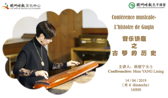 古琴演奏家杨丽宁女士将于2019年4月14日在欧洲时报文化中心举行中法双语音乐讲座之古琴的历史。