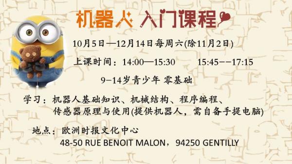 上课地点:欧洲时报文化中心48-50 RUE BENOIT MALON,94250 GENTILLY