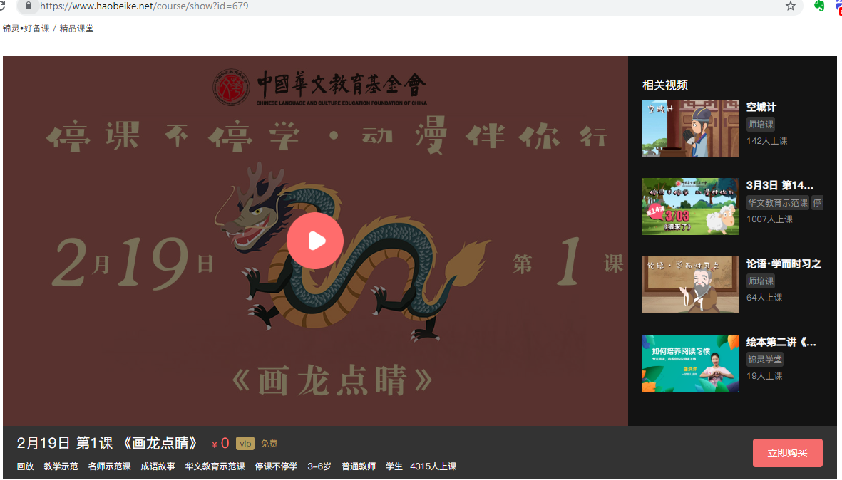 停课不停学,动漫伴你行!中国华文教育基金会推出的动漫中文课堂和大家见面啦!这里有趣味十足的动画、脍炙人口的成语故事和循循善诱的老师,寓教于乐,其乐无穷。还等什么呢?一起来沉浸在精彩纷呈的动漫课堂里吧! (持续更新中!)