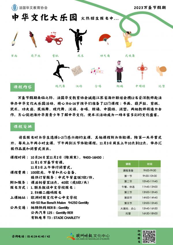 欧洲时报文化中心坚持以侨为本,以各种方式为旅法华侨华人提供力所能及的服务。除了配合华侨们强身健体和文艺兴趣的需要,开办各种文体活动班外,还紧跟时代步伐,开设了中法文及电脑学习班,以帮助华侨更好地融入社会。