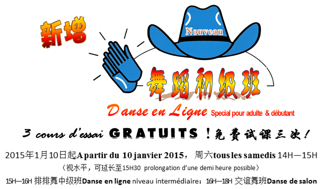欧洲时报文化中心于2015年1月10日起,每周六14点至15点开设舞蹈初级班,教授简单易学的排排舞,零基础的你也不必害怕!